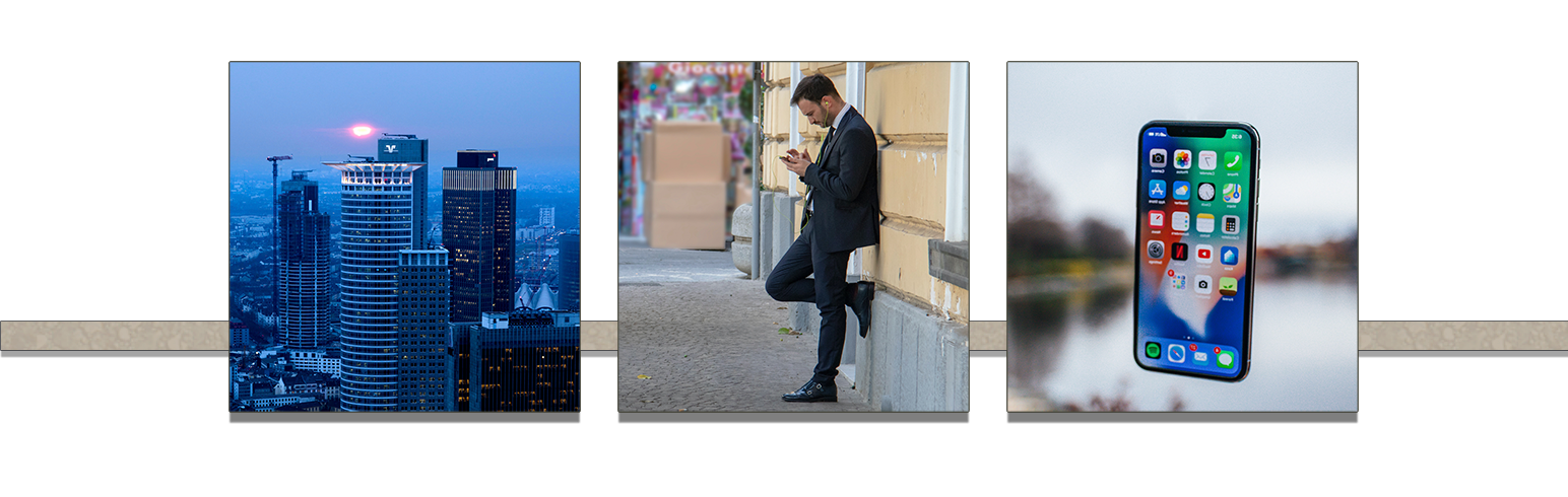 A execução procura ilustrar essa “omnipresença”, com a cor do fundo representando dois opostos de um espectro, um reflexo subtil aludindo a “em cima, ou em baixo”, proporcionado pela tecnologia digital, tornando o mundo financeiro virtualmente ilimitado
